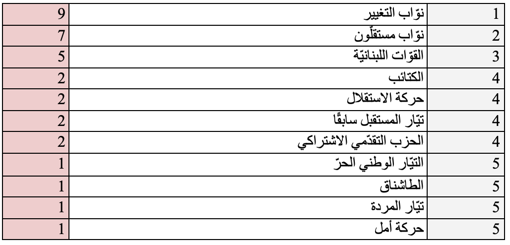 الجدول 2. الترتيب على أساس الأرقام المطلقة - من المجموعة السياسية التي سجّلت أعلى عدد من التصريحات إلى المجموعة التي سجّلت العدد الأقلّ