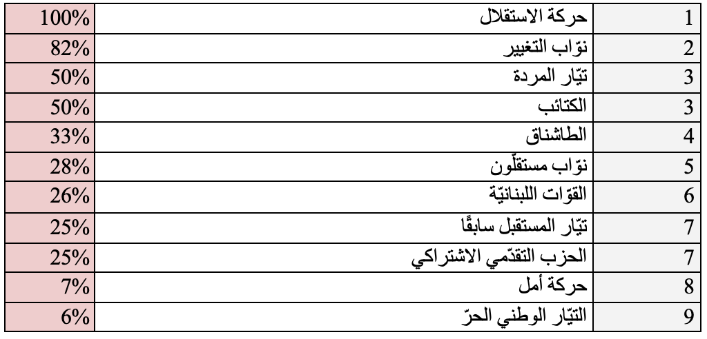 الجدول 3. الترتيب على أساس الأرقام النسبية - من المجموعة السياسية ذات النسبة المئوية الأعلى للأعضاء الذين أدلوا بتصريحات إلى المجموعة ذات النسبة الأقلّ