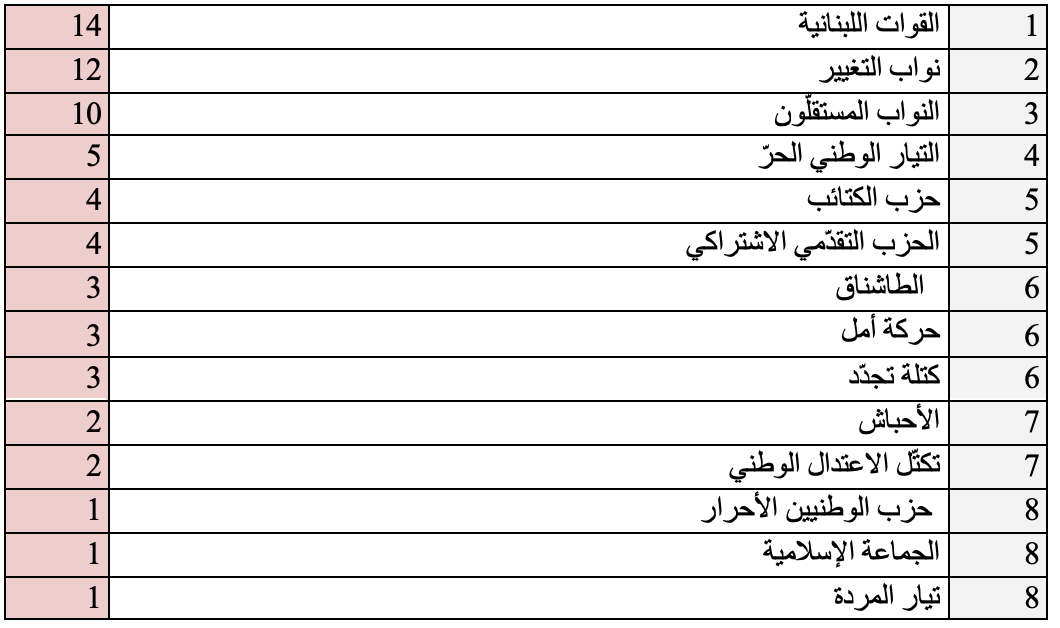 ويسمح النظر في العدد الإجمالي للتصريحات بإظهار المجموعات السياسية التي نشرت أكبر عدد من التصريحات خلال شهر آب 2023. وفي الجدول التالي لمحة عامة عن النتائج المُستقاة: