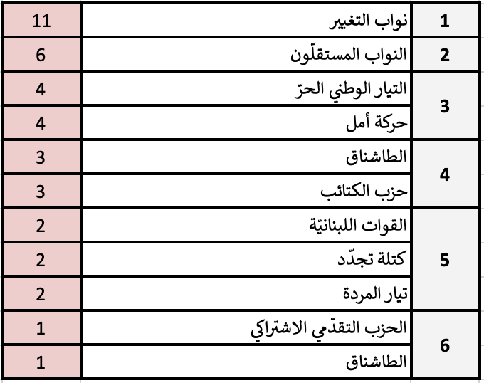 ويسمح النظر في العدد الإجمالي للتصريحات التي نشرتها كل مجموعة، بفهم المشهد السياسي اللبناني بشكل أعمق وبتحديد المجموعات التي تناولت حقوق الإنسان بالدرجة الأكبر خلال شهر نيسان 2024. وفي الجداول التالية لمحة عامة عن هذه النتائج: