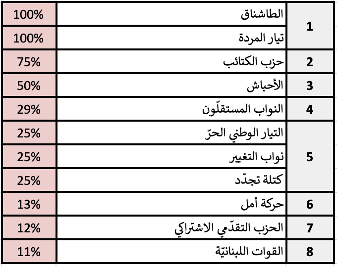 الجدول 3. الترتيب على أساس الأرقام النسبية - من المجموعة السياسية ذات النسبة المئوية الأعلى للأعضاء الذين أدلوا بتصريحات، إلى المجموعة ذات النسبة الأقلّ