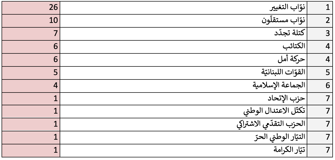 الجدول 4. ترتيب النواب العشرة الأوائل، حسب عدد التصريحات المنشورة في الفترة الممتدّة من حزيران/يونيو 2022 إلى تموز/يوليو 2023