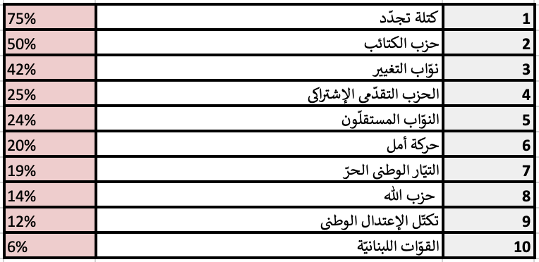 الجدول 3. الترتيب على أساس الأرقام النسبية - من المجموعة السياسية ذات النسبة المئوية الأعلى للأعضاء الذين أدلوا بتصريحات إلى المجموعة ذات النسبة الأقلّ