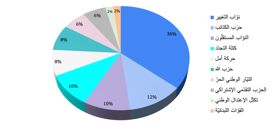 الرسم 2. توزيع البيانات حسب الأحزاب والمجموعات السياسية