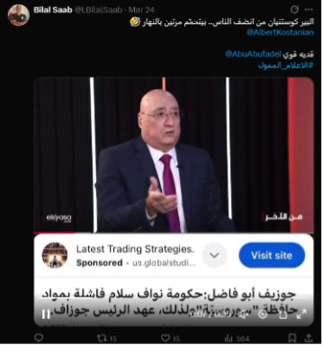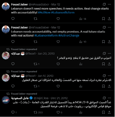 Continuing our investigation, we have documented additional evidence showing mimetic posts celebrating Karim Souaid’s appointment. These posts further substantiate Megaphone and Daraj Media’s assertions that the smear campaign was orchestrated as part of a broader strategy designed to influence and pressure authorities into appointing a specific candidate as Governor of Lebanon’s Central Bank.