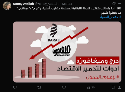 The complainants—lawyers Eli Shahla, Joseph Zaidan, and Georges Mousalli—further allege that these media outlets are involved in a “conspiracy aimed at weakening national sentiment and trust in the state,” accusing them additionally of receiving “dubious foreign funding.”